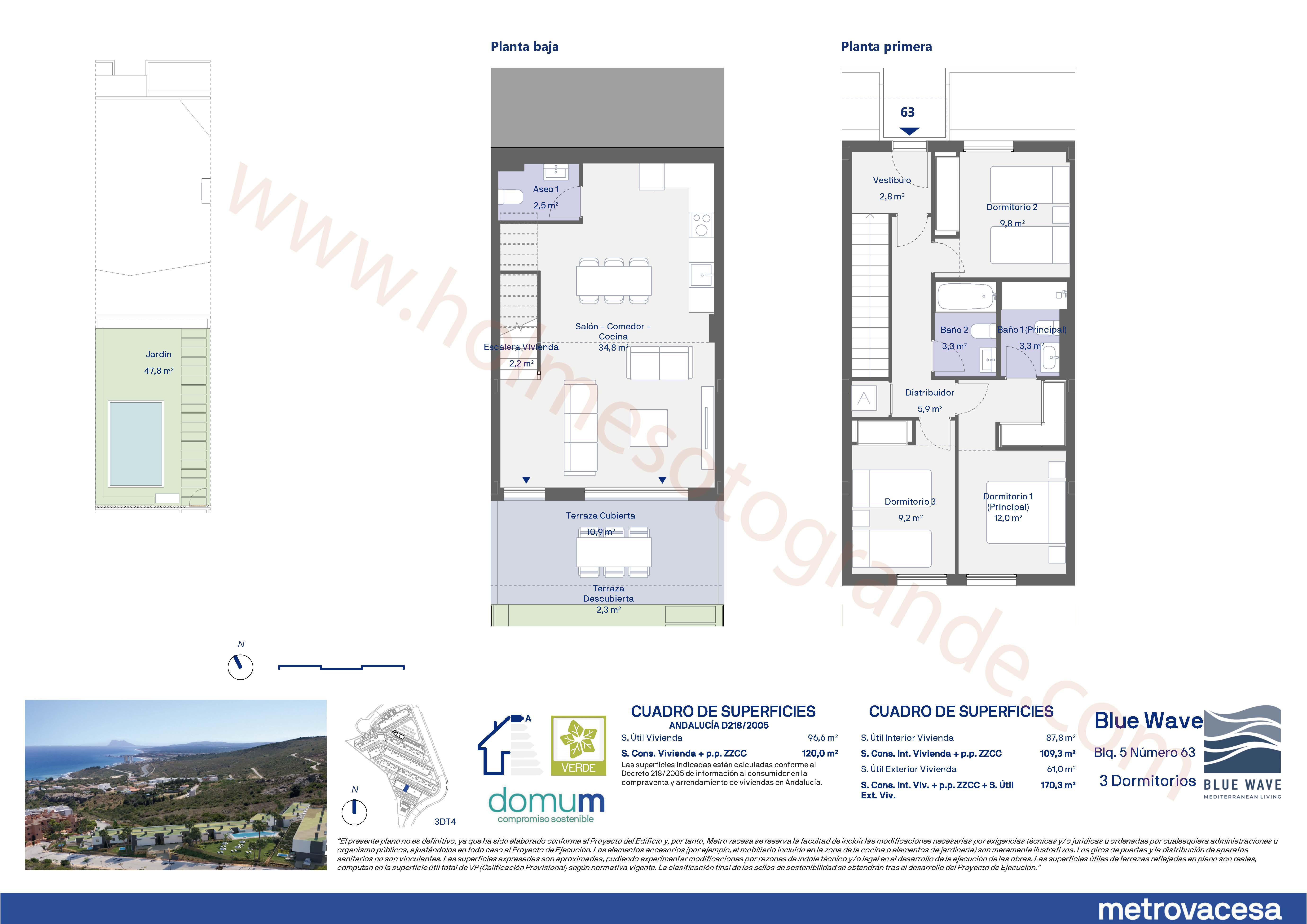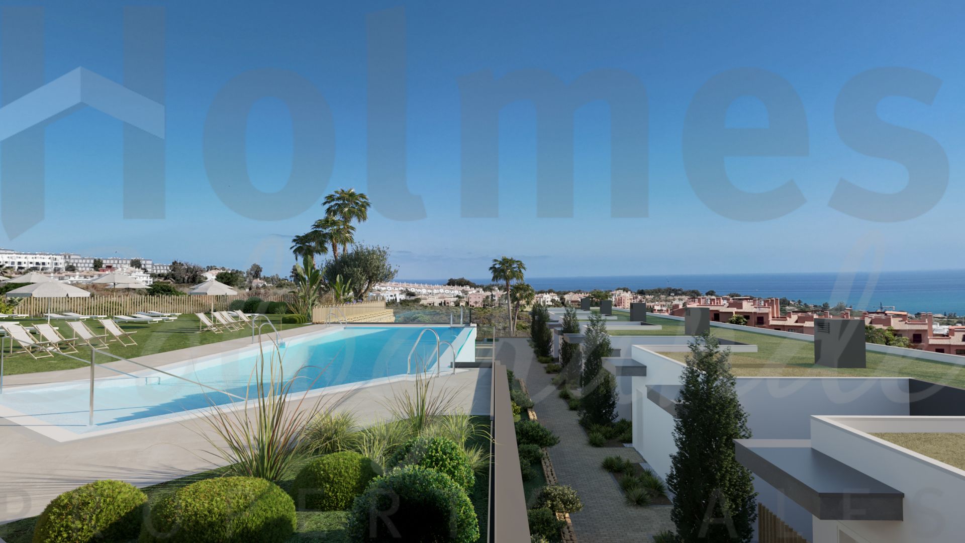 Blue Wave is a new residential development in Bahía de las Rocas, featuring modern townhouses with sea views, terraces, parking, and communal amenities. Construction started.Development in BLUE WAVE, Manilva
