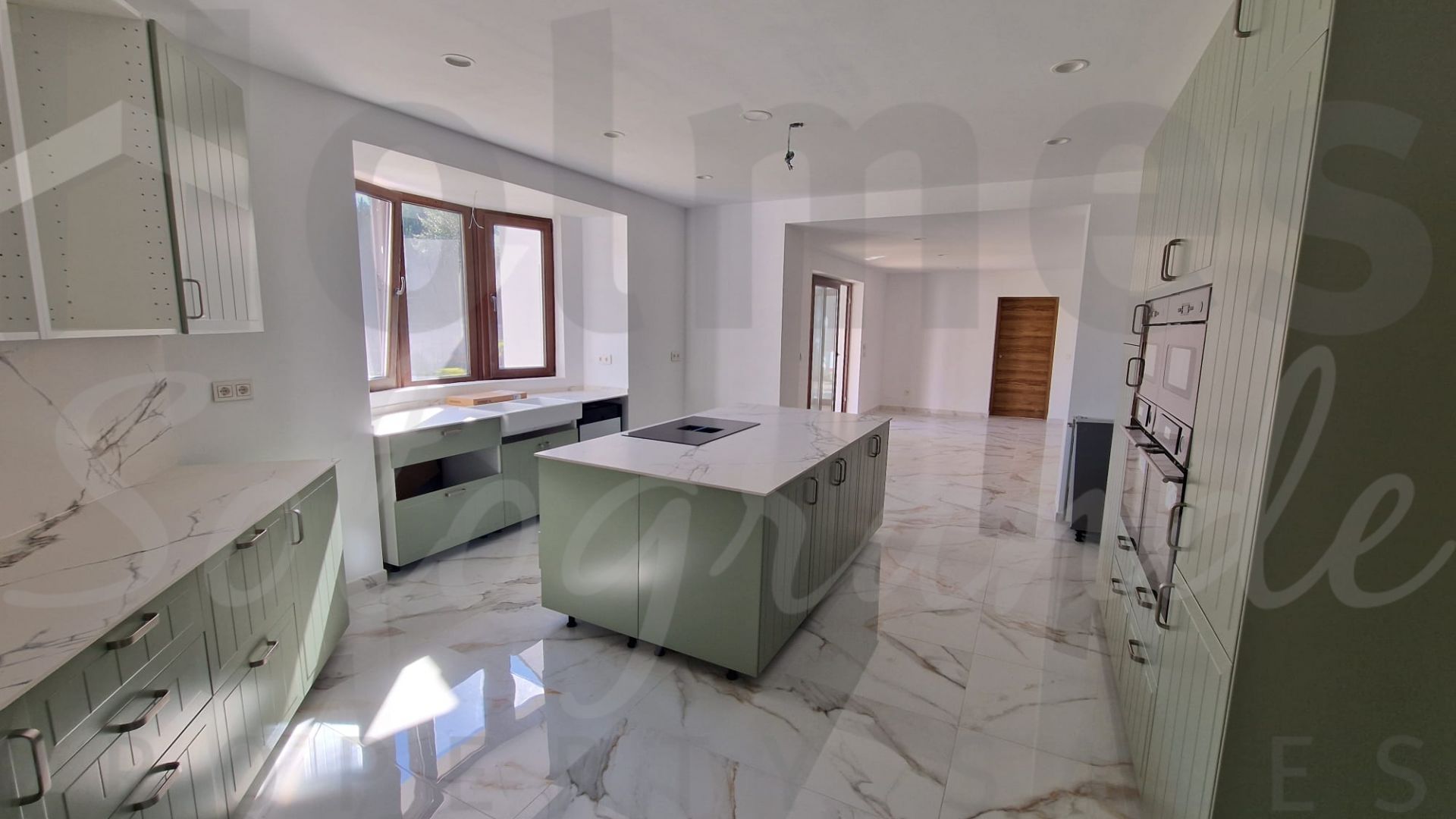 La vivienda dispone de cuatro generosos dormitorios y cuatro cuartos de baño, además de un aseo para invitados. Un amplio salón con chimenea crea un ambiente cálido y agradable, mientras que una segunda sala de estar ofrece un espacio adicional para relajarse o recibir visitas.