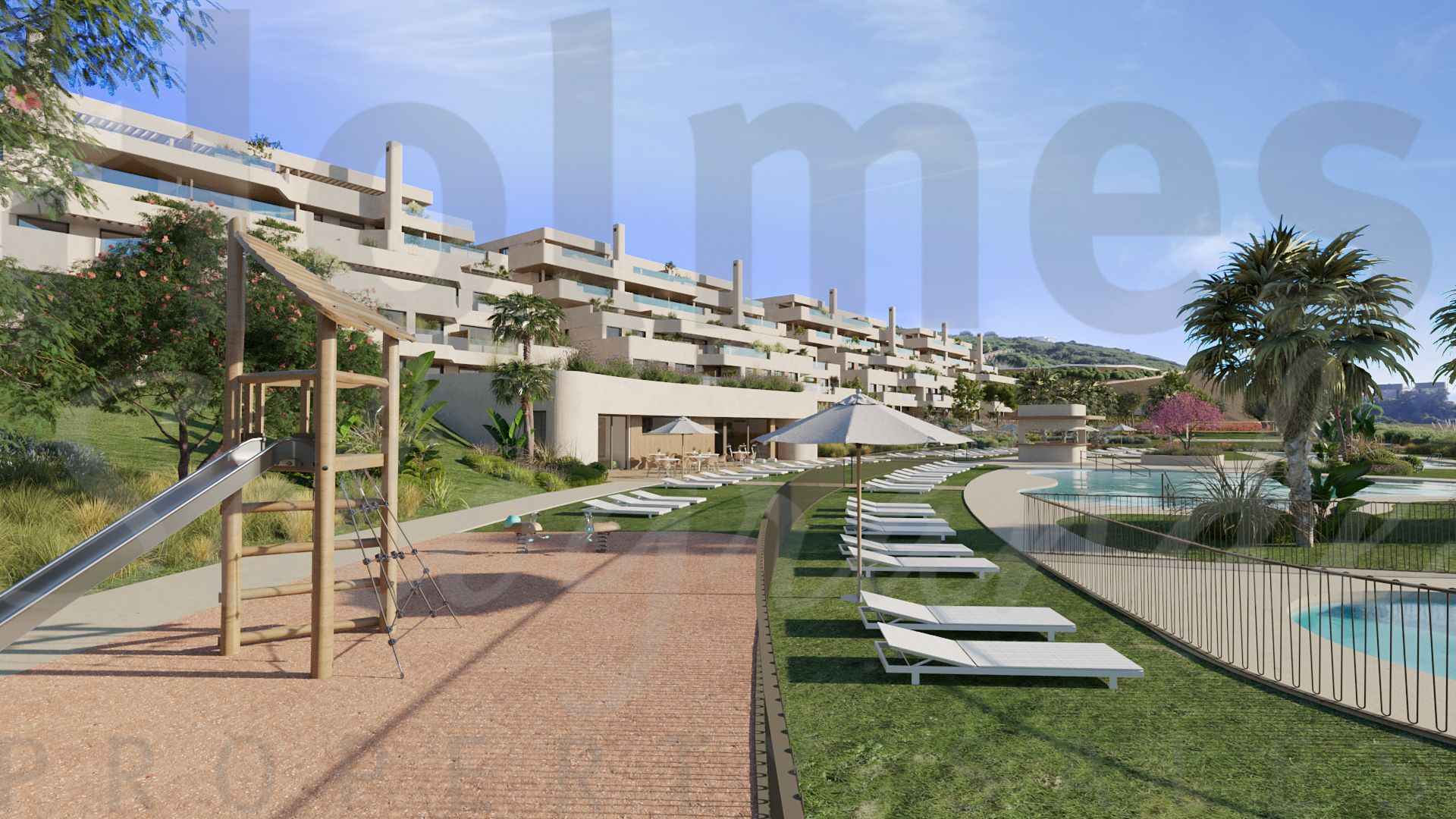 ATRIA is a new residential development located in La Alcaidesa, offering much more than just a home: it provides an environment in which to live life to the fullest. This project consists of 144 multi-family homes with 2 and 3 bedrooms, all of which include a parking space and storage room. All the terraces face SOUTH with side views of the sea, front views of the Heathland golf course at Hacienda Links, and green areas.