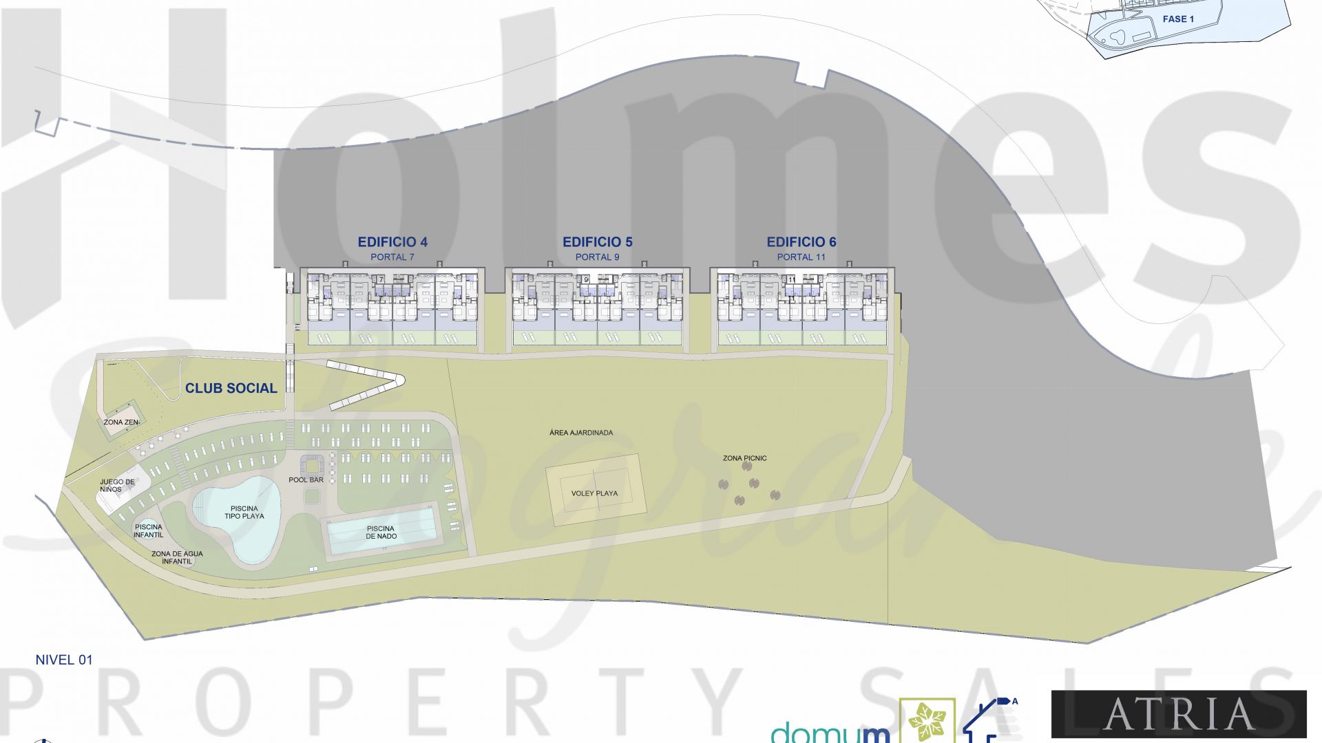 Phase 1: includes blocks 4, 5, and 6 (a total of 72 homes) along with the swimming pool, spa, coworking space, gym, children's area, sports court, and meditation area.