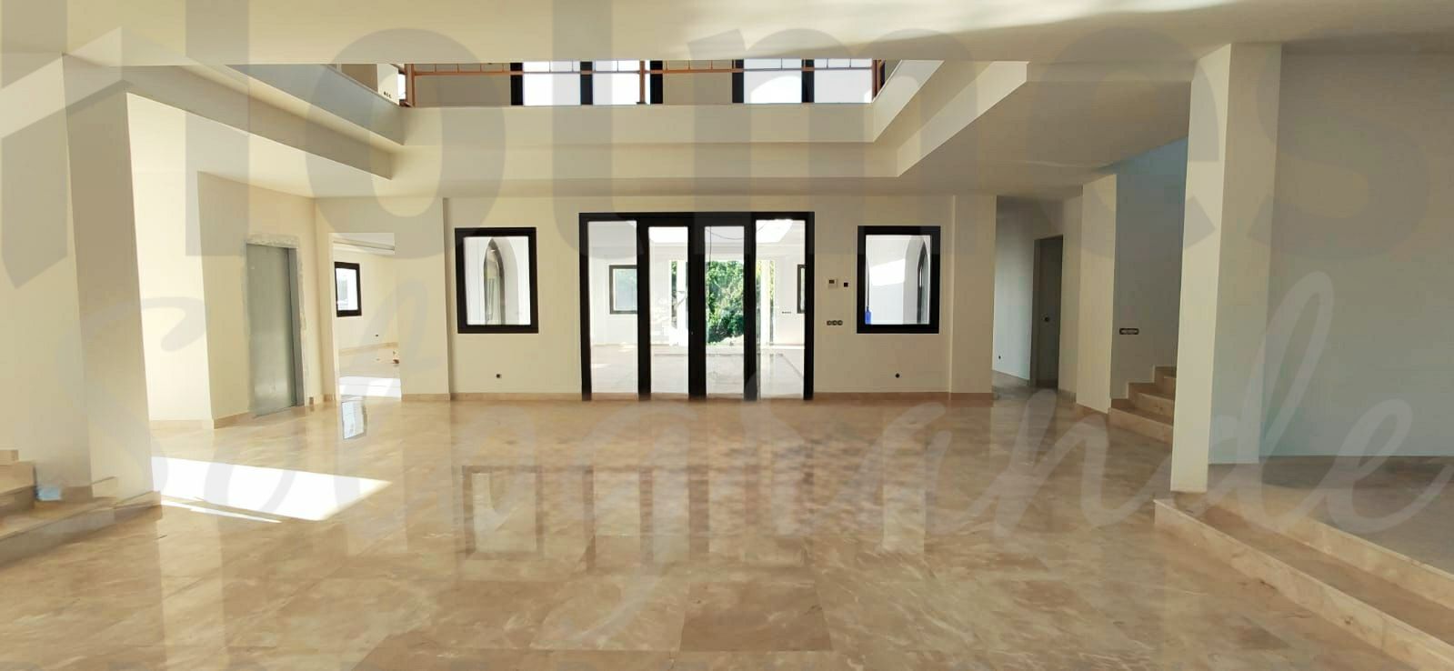 The villa has a total of 1,100 m² of built space, spread across four levels, all accessible via an elevator. The mansion is accessed through a 50 m² atrium. It features 5 main bedrooms, 7 bathrooms, a spacious 120 m² living room, a large kitchen, an office, an entrance hall, and terraces offering views of the sea and mountains, both on the rooftop and in the bedrooms. Additionally, there are three English-style patios providing natural light to the rooms on the ground floor. The top floor and terrace are pre-installed for a Jacuzzi.