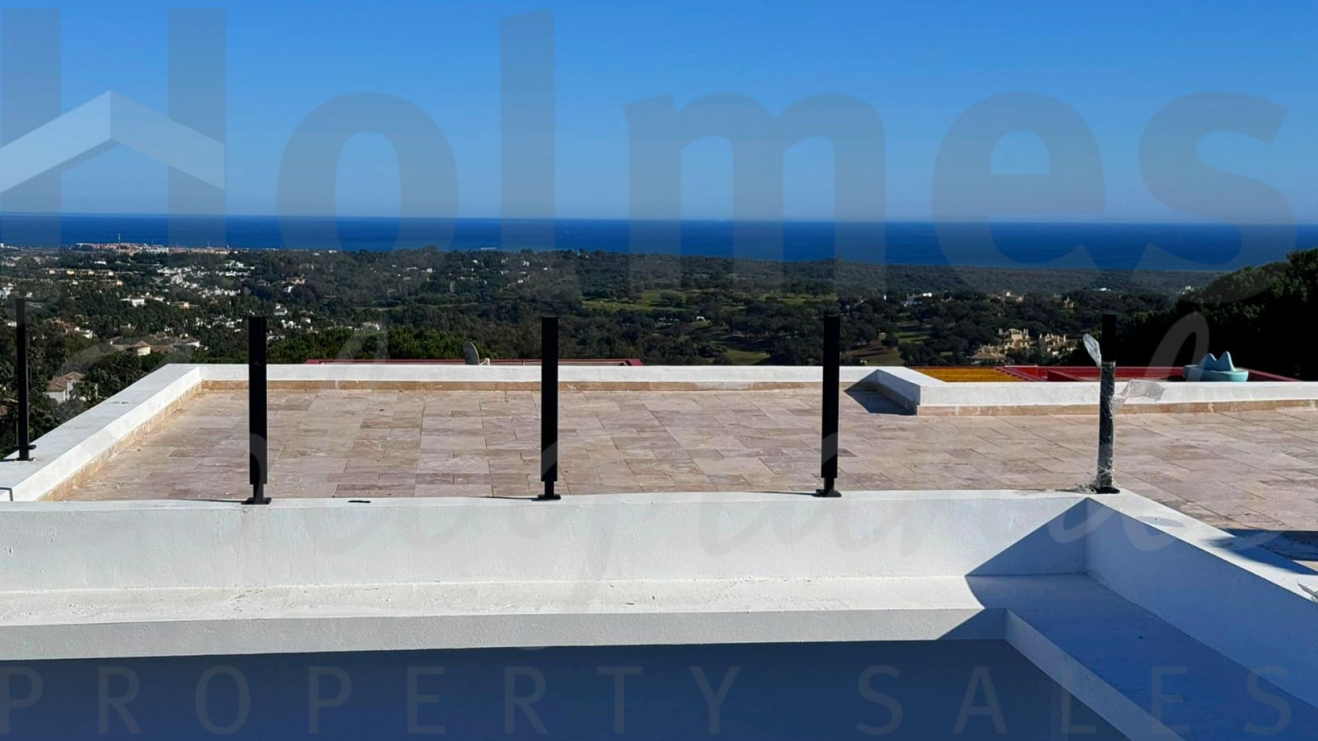 A superb villa built on an elevated site with outstanding panoramic views over golf courses to mountains and the sea.