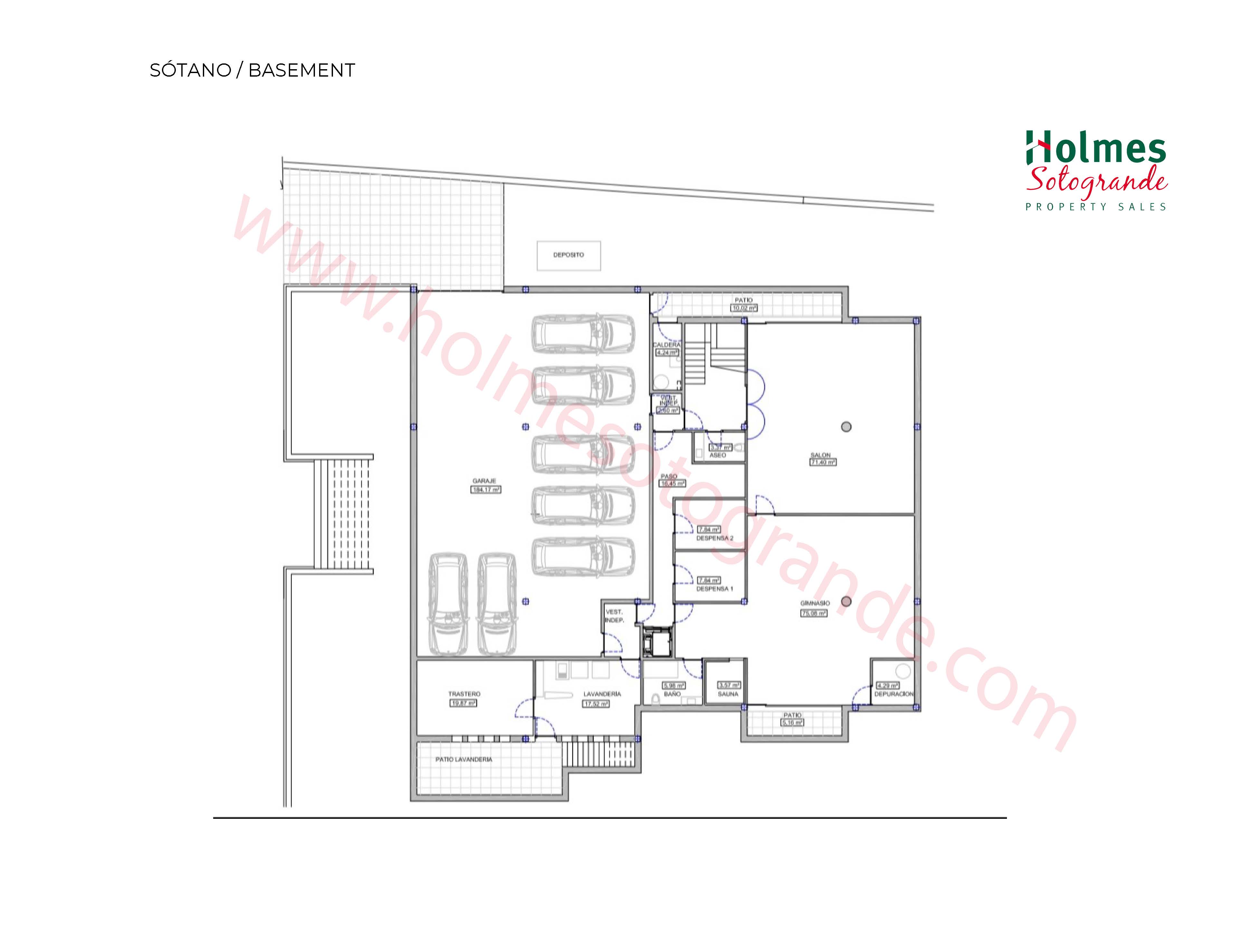 The property also includes a cinema room, a gym, a garage with space for 7 vehicles, and a service staff area with its own laundry facilities.