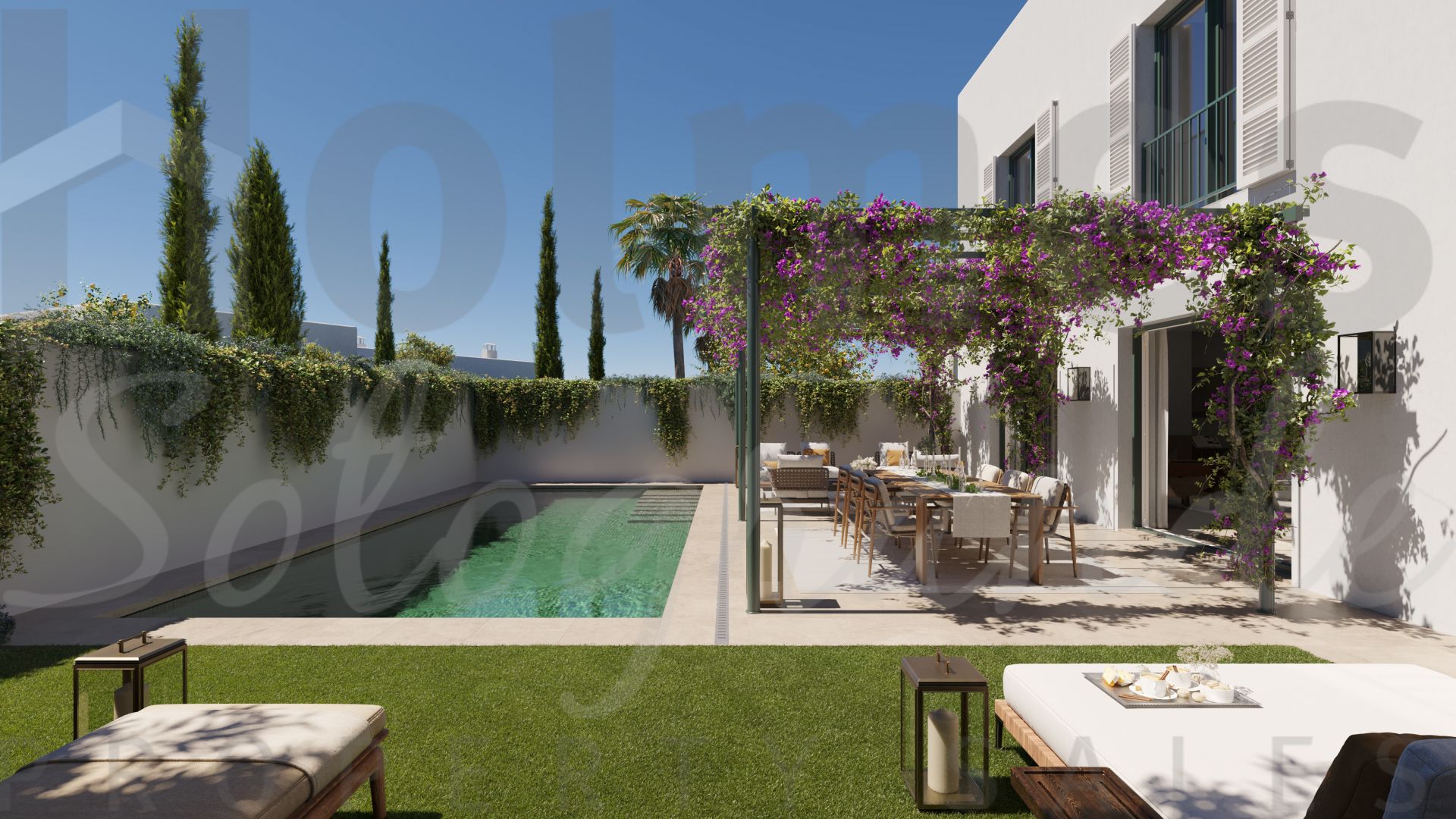 The three-bed Patio Homes are a seamless fusion of contemporary design and Andalusian heritage. Two-level homes with flat rooftops set around a private central patio, complete with lush garden, pool and pergola area.