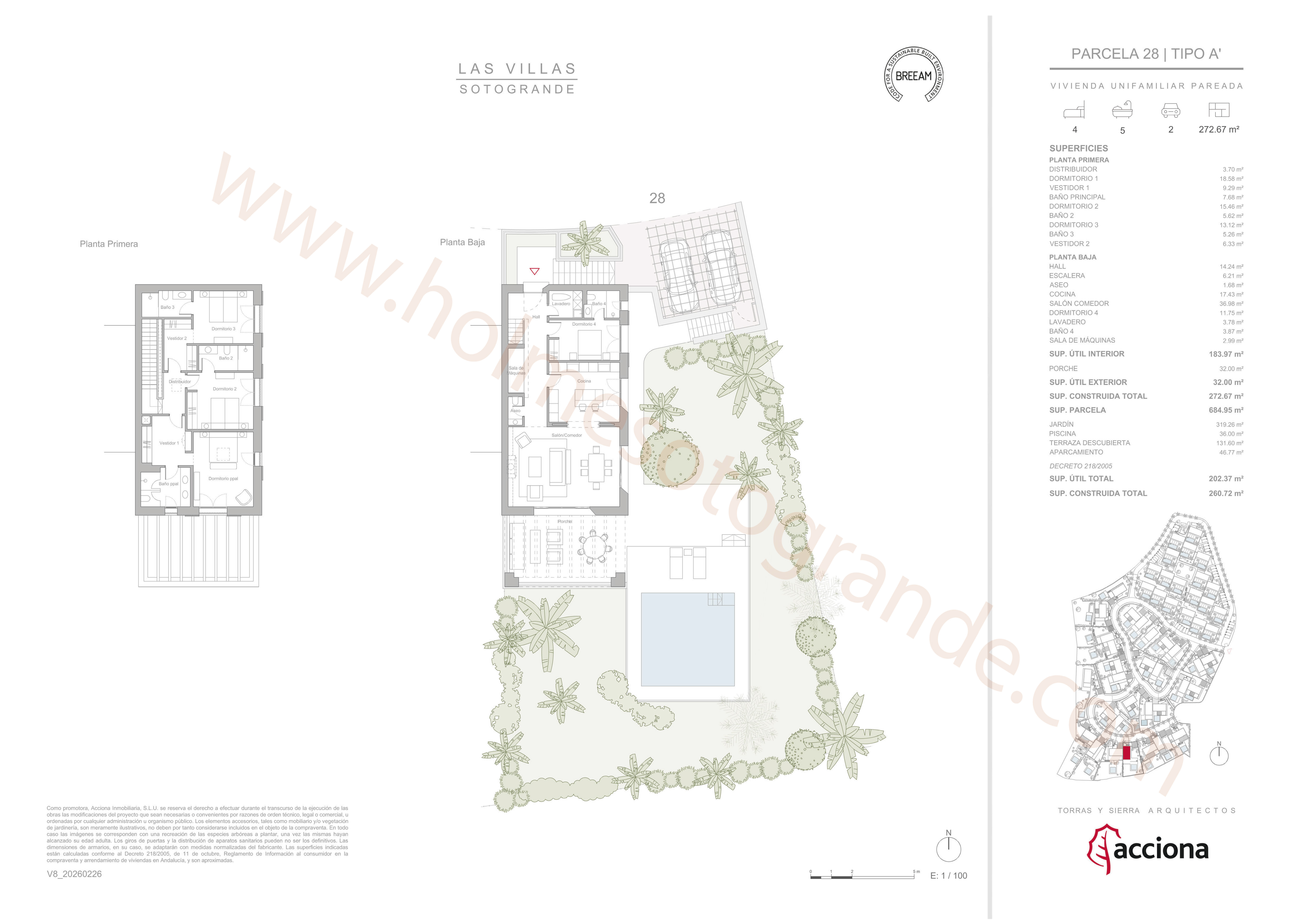 Las Villas de Los Álamos is an elegant residential complex of 49 villas, featuring traditional-style design, located within La Reserva, adjacent to the La Cañada golf course. What defines this new development in Sotogrande, where the surroundings take center stage, is the lush vegetation and outdoor spaces that shape and give meaning to the entire architectural project. The motto of this proposal is 'a garden with houses.' The exclusivity, sustainability, and design of its villas are set within a natural and gated environment. The Garden Houses, with four bedrooms and two floors, are designed to offer a relaxed outdoor lifestyle that prioritizes family privacy. The architecture merges with the private garden and pool. The elegant volumes blend with nature through spacious terraces and porches that extend into green or water surfaces. An ideal spaciousness to enjoy and make the most of the Mediterranean climate.